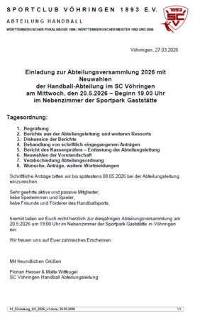 Einladung Abteilungsversammlung am 20.5.2026